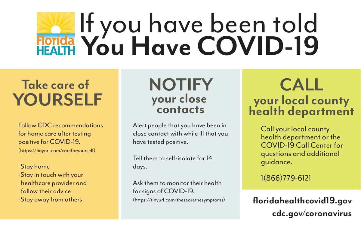 Florida Dept Health On Twitter What Do You Do If You Have Covid19 Stay Home And Away From Others Stay In Touch With Your Health Care Provider Alert Close Contact Individuals To
